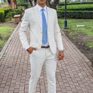 Lo más moderno, distinguido e innovador en línea de trajes con su corte slim regular, súper recomendado para los que gustan de salir de los colores tradiciones, familiares o invitados a eventos formales.